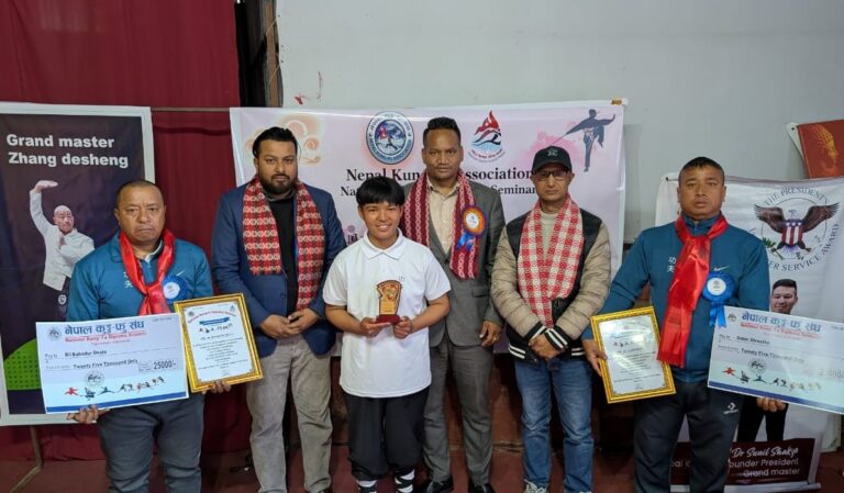 नेपाल कुङफु संघले विलबहादुर देउला र सविन श्रेष्ठलाई आइतबार नगदसहित सम्मान गरेको छ । स्थापनाकालदेखि संघलाई सहयोग गर्दै आएका प्रशिक्षकद्वय देउला र सविनलाई जनही २५ हजार नगदसहित सम्मान गरिएको हो ।