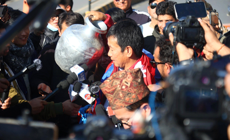 काठमाडौं । धरान उपमहानगरपालिकाका मेयर हर्क सम्पाङ रित्तो गाग्री बोकेर काठमाडौं आएका छन् ।