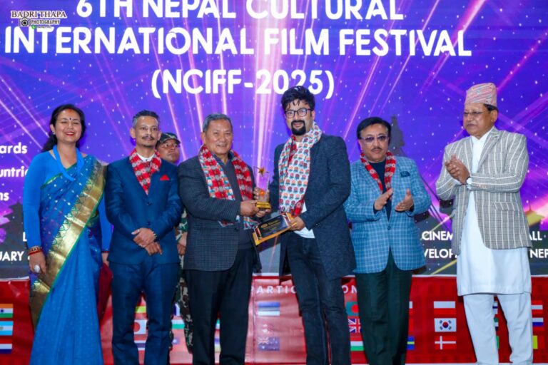 काठमाडौँ । बिहीबारबाट तीन दिनसम्म काठमाडौँमा जारी ‘नेपाल कल्चरल इन्टरनेशनल फिल्म फेस्टिभल’ (एनसिआईएफएफ)को छैटौँ संस्करण सम्पन्न भएको छ । सूचना सञ्चार तथा प्रविधि मन्त्री पृथ्वी सुब्बा गुरुङको प्रमुख आतिथ्यतामा चलचित्र विकास बोर्डमा विभिन्न उत्कृष्ट विधामा अवार्ड प्रदान गर्दै यो अवार्ड सम्पन्न भएको हो । यो महोत्सव नेपाल संस्कृति तथा चलचित्र केन्द्रको आयोजना र चलचित्र विकास बोर्डको सह आयोजनामा बिहीबार देखि शनिवारसम्म काठमाडौँमा तीन दिन आयोजना गरिएको थियो । यो महोत्सवमा यस पटक ४७ देशका ९८ वटा चलचित्रहरू अन्तिम प्रतिस्पर्धामा उत्रिएका थिए । यि सबै चलचित्रलाई महोत्सवमा प्रदर्शन गरिएको थियो ।