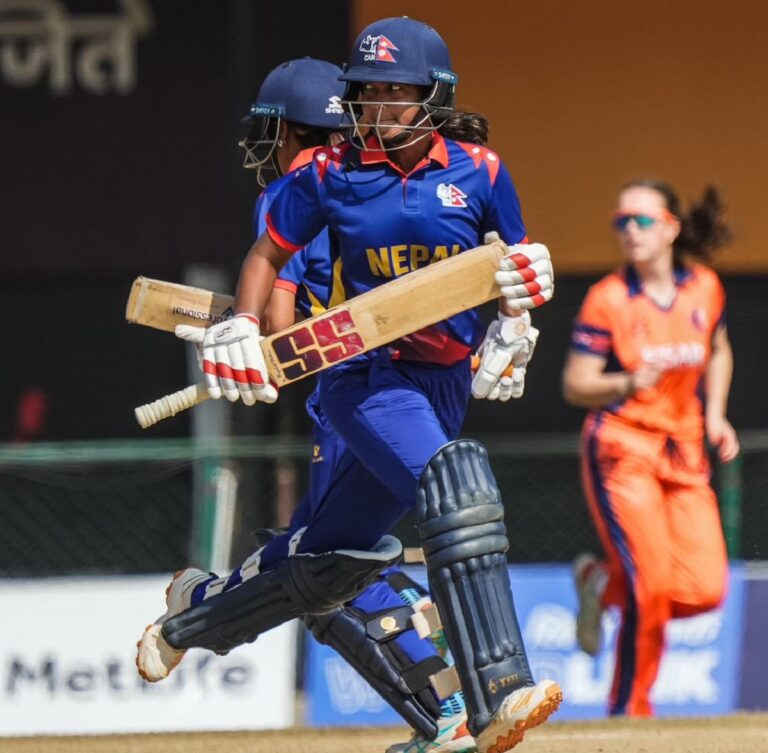 काठमाडौं । नेपालले त्रिकोणात्मक महिला अन्तरराष्ट्रिय ट्वान्टी–२० शृङ्खलाको आफ्नो पाँचौँ खेलमा नेदरल्याण्ड्सलाई जितका लागि एक सय ४६ रनको लक्ष्य दिएको छ ।
