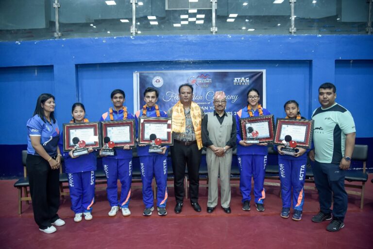 स्ट्याग च्याम्पियन्स टेबलटेनिस एकेडेमीले दक्षिण एसियाली युथ टेबलटेनिस च्याम्पियनसिपमा पदक जित्ने आफ्ना पाँच खेलाडीलाई शनिबार विशेष कार्यक्रममार्फत नगदसहित सम्मान गरेको छ।