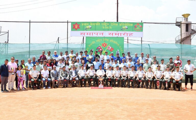 नेपाली सेनाको आयोजना र नेपाल टेनिस संघको प्राविधिक सहयोगमा सम्पन्न तेस्रो संस्करणको ‘प्रधान सेनापति राष्ट्रिय टेनिस प्रतियोगिता–२०८२’ आज सम्पन्न भएको छ। जङ्गी अड्डामा आयोजित समापन समारोहमा प्रधान सेनापति महारथी श्री अशोक राज सिग्देल प्रमुख अतिथि रहनु भएको थियो।