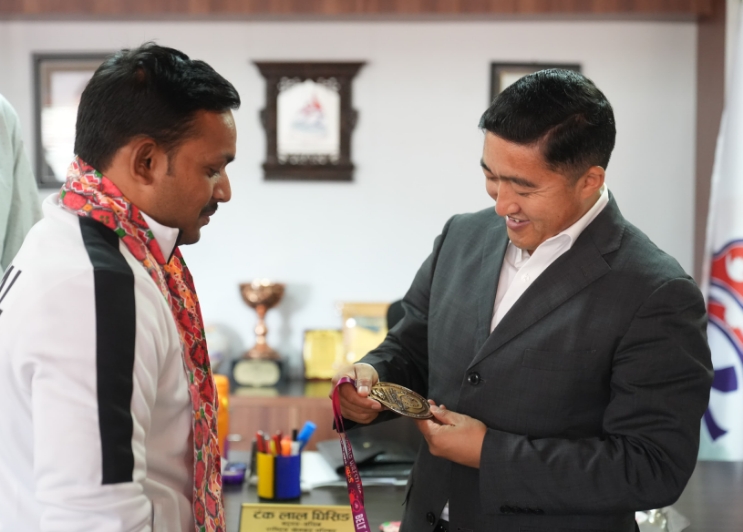 राष्ट्रिय खेलकुद परिषद्का सदस्य–सचिव टंकलाल घिसिङले युडब्ल्युडब्ल्यु एसियन बेल्ट कुस्ती एलिस च्याम्पियनसिपमा कांस्य पदक जितेका सुरेश चुनारालाई बुधबार विशेष सम्मानसहित बधाई दिएका छन्। त्रिपुरेश्वरस्थित आफ्नै कार्यकक्षमा आयोजित कार्यक्रममा सदस्य–सचिव घिसिङले सुरेशलाई स्वागत गर्दै उनको उपलब्धिको प्रशंसा गरे र आगामी यात्राका लागि शुभकामना व्यक्त गरे।