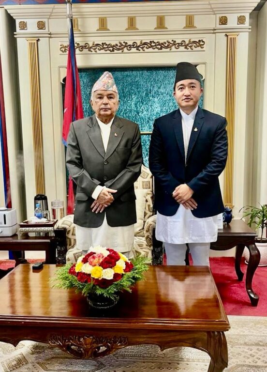 राष्ट्रपति रामचन्द्र पौडेलसँग राष्ट्रिय खेलकुद परिषद् (राखेप) का सदस्य सचिव टंकलाल घिसिङले शिष्टाचार भेट गर्नुभएको छ।