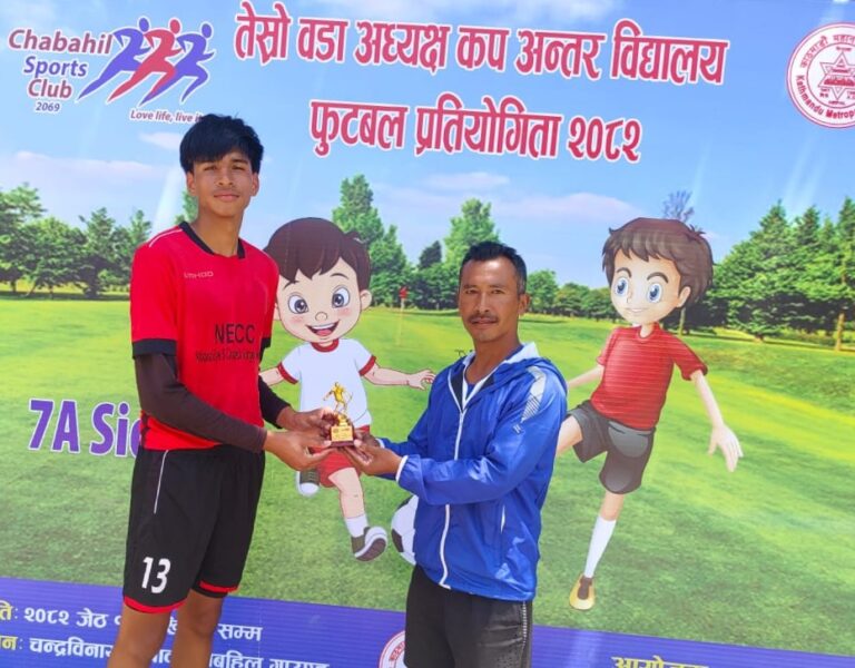 काठमाडौं, जेठ १९ — काठमाडौं महानगरपालिका वडा नं. ७ को आयोजनामा चावहिलमा जारी तेस्रो वडा अध्यक्ष कप अन्तर्गतको छात्र अन्तरविद्यालय फुटबल प्रतियोगितामा एनआईसी एकेडेमीले शानदार प्रदर्शन गर्दै सेमिफाइनलमा स्थान सुरक्षित गरेको छ।