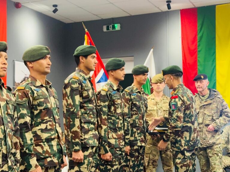 काठमाडौँ । मित्रराष्ट्र संयुक्त अधिराज्य बेलायतको वेल्सस्थित ब्रेकनमा आयोजित ‘एक्सरसाइज क्याम्ब्रियन पेट्रोल २०२५’ मा नेपाली सेनाको टोलीले सर्वोत्कृष्ट प्रदर्शन गर्दै स्वर्ण पदक हासिल गरेको छ । उक्त सैन्य अभ्यास २०८२ असोज २३ देखि २५ गतेसम्म सम्पन्न भएको थियो ।