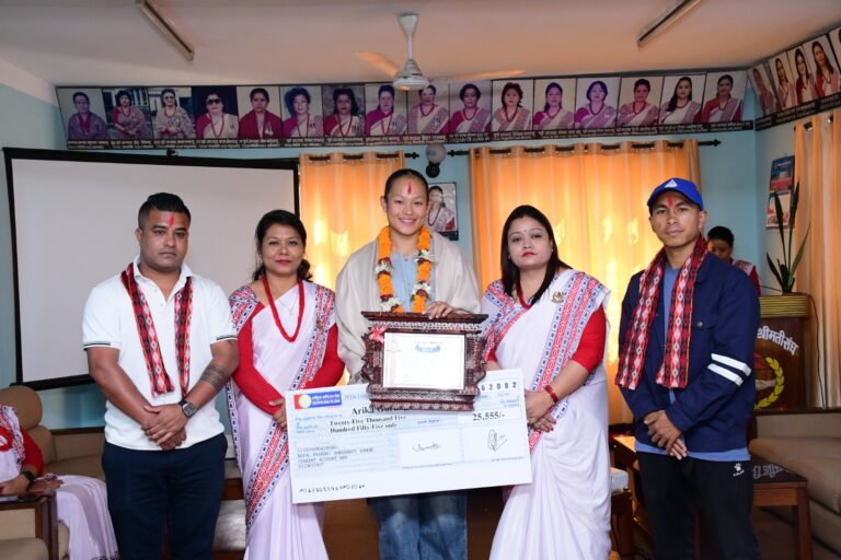 अन्तर्राष्ट्रिय कराते प्रतियोगितामा ऐतिहासिक सफलता प्राप्त गरेकी एरिका गुरुङलाई नेपाल प्रहरी श्रीमती संघले नगदसहित सम्मान गरेको छ ।