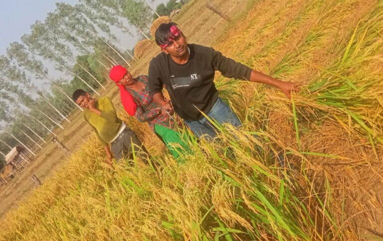 लमही नगरपालिका–३ की ४२ वर्षीया सीता चौधरी सोमबार साँझ पाँच बजेसम्म खेतमै धान काट्दै थिइन् । उनले भनिन्, “अहिले मौसम खुला छ । धान पाकेर पहेँलै भएकाले बिहानदेखि बेलुकासम्म खेतमै धान काट्न व्यस्त हुन्छौं ।”