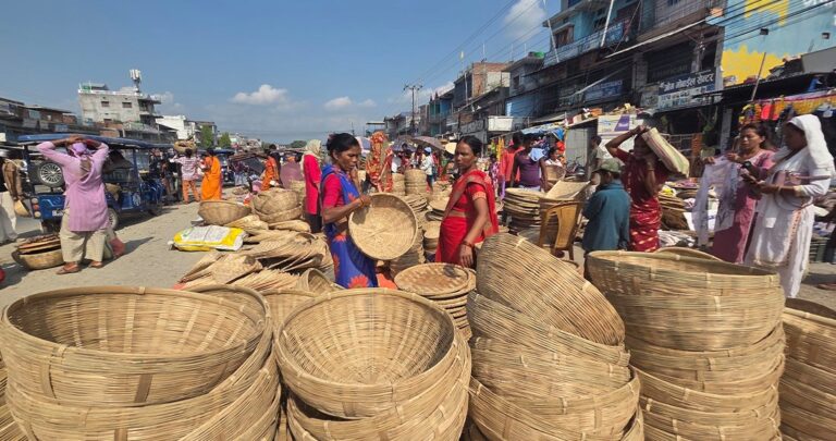 छठका लागि सामान किन्न बजार आएकी ग्राहक लक्ष्मी खड्काले भनिन्, “छठमा विशेषगरी कोनिया र ढाकी चाहिन्छ, त्यसैमा फलफूल राखेर पूजा गर्ने चलन छ ।”