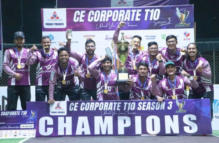 काठमाडौं । तेस्रो संस्करणको सीई कर्पोरेट टी–१० इन्डोर क्रिकेट प्रतियोगिताको उपाधि क्लाउड फ्याक्ट्रीले हात पारेको छ।