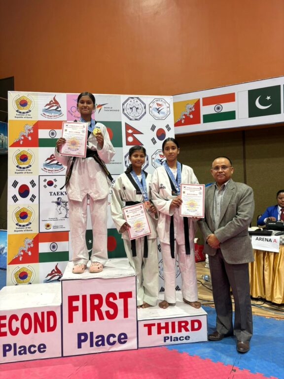 काठमाडौं । सीतापाइला तेक्वान्दो डोजाङकी चाँदनी खातुनले १३औँ कोरियन एम्बेस्डर अन्तर्राष्ट्रिय तेक्वान्दो प्रतियोगितामा स्वर्ण पदक जितेकी छन्। सातदोबाटोस्थित नेपाल तेक्वान्दो संघको हलमा बिहीबार सम्पन्न क्याडेट महिलातर्फ ४० केजीमुनिको तौल समूहमा उनले पहिलो स्थान हासिल गरेकी हुन्। फोनिक्स डोजाङकी सुभानी माझी दोस्रो भइन् भने मधेस प्रदेशकी सन्तोषी कुमारी र दीलिप स्मृति डोजाङकी श्रीयुक्ता लामाले तेस्रो स्थान हात पारे।