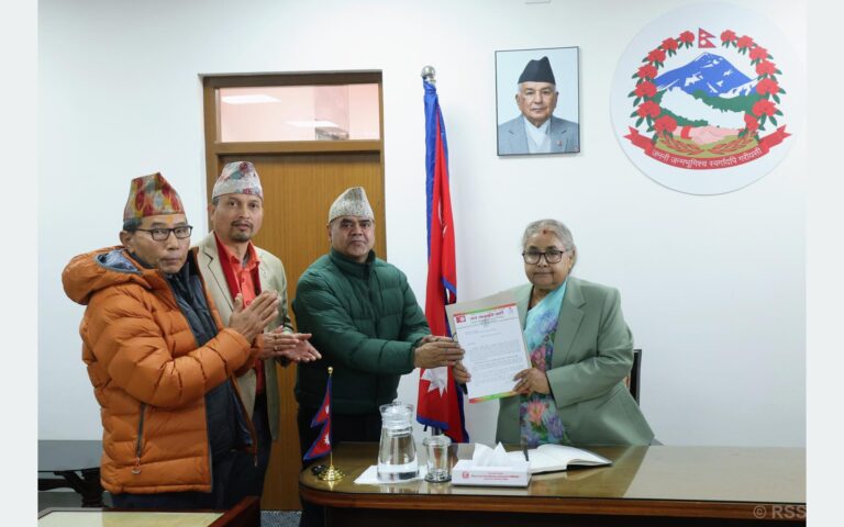 काठमाडौँ । प्रधानमन्त्री सुशीला कार्कीसँग बिहीबार भेट गरी जय मातृभूमि पार्टीको प्रतिनिधिमण्डलले ज्ञापनपत्र बुझाएको छ।