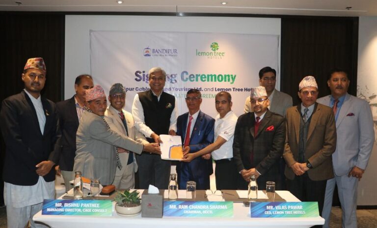 काठमाडौँ । बन्दीपुर केवलकार एण्ड टुरिजम लिमिटेड र भारतको अग्रणी तथा अन्तर्राष्ट्रियस्तरमा स्थापित होटल समूह लेमन ट्री होटल्स लिमिटेडबीच होटल सञ्चालनका लागि १५ वर्षे फ्रेन्चाइजी तथा व्यवस्थापन सम्झौता भएको छ ।