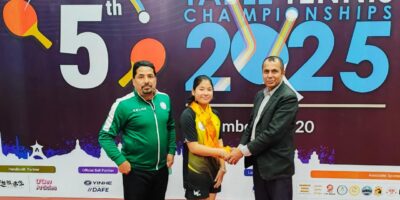 काठमाडौं ।काठमाडौं महानगरपालिका वडा १६ का प्रकाश धाक्वाले पाँचौँ अल नेपाल अन्तरवडा राष्ट्रिय टेबलटेनिस प्रतियोगिताअन्तर्गत ६० वर्षमाथि पुरुष सिंगल्स (भेट्रान) वर्गमा स्वर्ण पदक जितेका छन् । फाइनल खेलमा धाक्वाले काठमाडौं