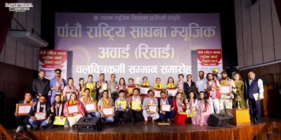 काठमाडौँ, जेठ २० नेपाली सांगीतिक क्षेत्रमा महत्वपूर्ण मानिने पाँचौं राष्ट्रिय साधना म्युजिक अवार्ड (रिवार्ड) २०८१ काठमाडौंमा सम्पन्न भएको छ। संघीय राजधानीको चलचित्र विकास बोर्डको सभाहलमा आयोजित उक्त कार्यक्रममा कुल २२