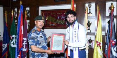 २६ वैशाख, काठमाडौं । सशस्त्र प्रहरी बलका महानिरीक्षक राजु अर्यालले ‘म्यान अफ द वर्ल्ड’ प्रतियोगितामा नेपालको प्रतिनिधित्व गर्न लागेका आयुष दुलाललाई विशेष बिदाई गरेका छन्। आगामी मे २३ देखि ३१