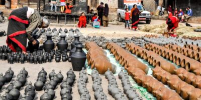 भक्तपुर । दसैँको चहलपहल बढेसँगै भक्तपुरका कुम्हाले परिवारहरू यतिबेला माटोका सामग्री बनाउन भ्याइनभ्याइ छन् । सूर्यविनायकका श्याम प्रजापतिको परिवार बिहानदेखि रातिसम्म निरन्तर काममा व्यस्त छ । रातिसम्म जागारो गरेर अर्डर