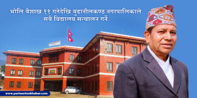 काठमाडौं । आज (२०८२ बैशाख १० गते) बसेको बुढानीलकण्ठ नगरपालिकाको नगर कार्यपालिका बैठकले नगरपालिकाभित्र संचालित सामुदायिक विद्यालय संचालनमा बोल्ड निर्णय गरेको छ । नगरपालिकाले विद्यालयहरुलाई बैशाख ११ गतेदेखि नियमित कक्षा