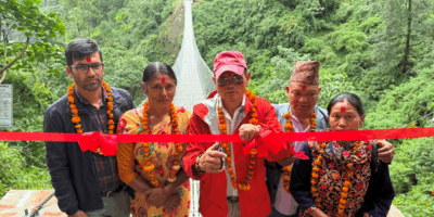 म्याग्दी, कात्तिक ११ गते ।मङ्गला गाउँपालिका–४ न्यूखोलामा झोलुङ्गे पुल निर्माण भएपछि करिब दुई सय घरपरिवार प्रत्यक्ष लाभान्वित भएका छन् । पुल सञ्चालनमा आएपछि बुकेनी र धापुङ्ग गाउँबीचको आवागमन सहज बनेको
