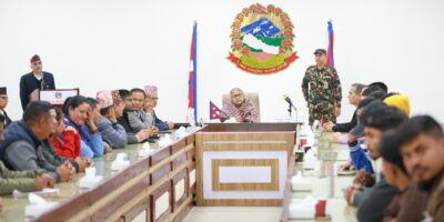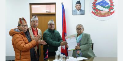 काठमाडौँ । प्रधानमन्त्री सुशीला कार्कीसँग बिहीबार भेट गरी जय मातृभूमि पार्टीको प्रतिनिधिमण्डलले ज्ञापनपत्र बुझाएको छ। भेटका क्रममा पार्टीले आगामी निर्वाचन मात्र लक्षित नगरी सरकारले सुशासनलाई प्राथमिक एजेन्डा बनाई काम गर्नुपर्ने
