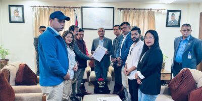 काठमाडौँ । नेपाल पत्रकार महासङ्घको टोलीले गृहमन्त्री रमेश लेखकलाई ध्यानाकर्षणपत्र बुझाएको छ । महासङ्घका महासचिव रामप्रसाद दाहालसहित आठ जनाको संयुक्त टोली चैत १५ गते तीनकुनेमा भएको हिंसात्मक प्रदर्शनका क्रममा सञ्चारमाध्यम