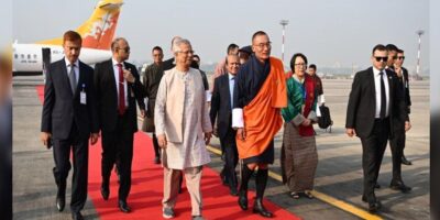 काठमाडौँ । भुटानका प्रधानमन्त्री सेरिङ तोब्गे दुईदिने राजकीय भ्रमणका लागि शनिबार बंगलादेश पुग्नुभएको छ । ढाकास्थित हजरत शाहजलाल अन्तर्राष्ट्रिय विमानस्थल (एचएसआईए)मा उहाँलाई बंगलादेशका मुख्य सल्लाहकार प्रा. मुहम्मद युनुसले स्वागत गरेका