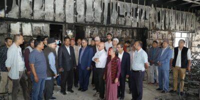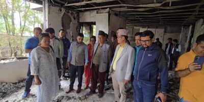 ललितपुर । नेपाल कम्युनिष्ट पार्टी (एमाले) का वरिष्ठ उपाध्यक्ष ईश्वर पोखरेललगायत शीर्ष नेताहरूले ललितपुरस्थित नेपाली कांग्रेस केन्द्रीय कार्यालयको अवलोकन गरेका छन् । जेनजी प्रदर्शनका क्रममा आगजनी भएको कार्यालयमा आज बिहान
