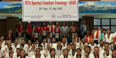 २०८२ साल आषाढ २० गते, नेपाल तेक्वान्दो संघद्वारा आयोजित स्वयम्सेवक तेक्वान्दो प्रशिक्षक विशेष तालिमको समापन कार्यक्रम युवा तथा खेलकुद मन्त्री माननीय तेजुलाल चौधरीज्यूको प्रमुख आतिथ्यमा भव्य रूपमा सम्पन्न भयो। नेपाल