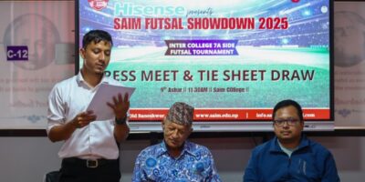काठमाडौं, असार ९ सायम कलेजको आयोजनामा सुरु हुन लागेको ‘हाइसेन्स नेपाल प्रथम सायम अन्तरकलेज सेभेन ए साइड फुटसल प्रतियोगिता’मा २८ छात्र टिमको सहभागिता रहने भएको छ। प्रतियोगिता असार १२ गते