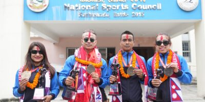 काठमाडौं, असार १ गते ।राष्ट्रिय खेलकुद परिषद् (राखेप) ले १५औं दक्षिण एसियाली शारीरिक सुगठन प्रतियोगिताबाट पदकसहित फर्किएको नेपाली टोलीलाई आइतबार स्वागत तथा सम्मान गरेको छ। त्रिपुरेश्वरस्थित राखेप परिसरमा आयोजित कार्यक्रममा