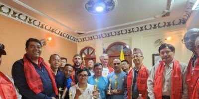 काठमाडौं, जेठ २७ अन्तर्राष्ट्रिय खेलमा उत्कृष्ट प्रदर्शन गर्ने खेलाडीहरू निश्चल तामाङ र उमेश महर्जनलाई मार्सल आर्ट्स अर्गनाइजेसन नेपालले नगदसहित सम्मान गरेको छ। सेल्फ डिफेन्स प्रशिक्षणका लागि नेपाल आएका जर्मनीका प्रशिक्षक