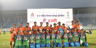 यू–१४ राष्ट्रिय विद्यालय खेलकुद अन्तर्गत रग्बी सेभेन्स प्रतियोगितामा छात्रतर्फ मधेश र छात्रातर्फ सुदूरपश्चिम प्रदेश च्याम्पियन बनेका छन्। त्रिपुरेश्वरस्थित दशरथ रंगशालामा सम्पन्न छात्र फाइनलमा मधेशले कर्णालीलाई सडन डेथमा पराजित गर्दै उपाधि