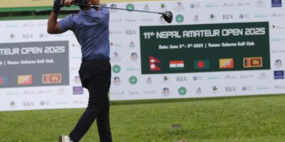 गोकर्ण गल्फ क्लबमा जारी नेपाल एमेच्योर ओपन गल्फ च्याम्पियनसिपमा ऐतिहासिक प्रदर्शन काठमाडौं, जेठ २२ – नेपाल ‘ए’ टिमले ११औं संस्करणको नेपाल एमेच्योर ओपन गल्फ च्याम्पियनसिपको टिम स्पर्धामा स्वर्ण पदक जितेको
