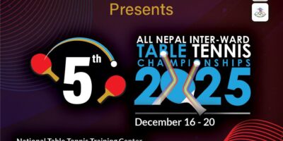 अखिल नेपाल टेबलटेनिस संघको तत्वावधान तथा स्पिन इभेन्ट्स प्रा.लि.को आयोजनामा पाँचौँ देशव्यापी अन्तर वडा टेबलटेनिस प्रतियोगिता पुस १ गतेदेखि सुरू हुने भएको छ।स्पिनका अध्यक्ष सुमन शाक्यका अनुसार प्रतियोगितामा ११ विधामा