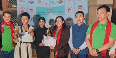 काठमाडौं, वैशाख १९ काठमाडौंका सुमन घले र सम्पदा सिवाकोटी तेस्रो बागमती प्रदेशस्तरीय खुला तेक्वान्दो लिगमा उत्कृष्ट खेलाडीको उपाधि जित्न सफल भएका छन्। सुमनले पुरुष र सम्पदाले महिलातर्फ उत्कृष्ट प्रदर्शन गर्दै