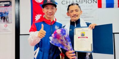 काठमाडौं, वैशाख १९ अमेरिकामा सम्पन्न हिराल्डो सोतोकान सोबुकान अन्तर्राष्ट्रिय कराते च्याम्पियनसिपमा रजत पदक जितेका सन्तोष राईलाई न्यूयोर्कमा आयोजित एक विशेष कार्यक्रममार्फत सम्मान गरिएको छ। उक्त सम्मान कार्यक्रम च्याम्पियन मार्सल आर्ट्स