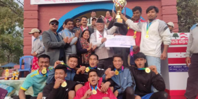 फागुन । चौथो खुमबहादुर खड्का स्मृति लुम्बिनी प्रदेशस्तरीय खुला पुरुष भलिबल प्रतियोगिताको उपाधि मणिमुकुन्द भलिबल क्लब रुपन्देहीले जितेको छ । घोराहीमा शनिबार भएको फाइनल खेलमा न्यु होराइजन स्पोट्र्स क्लब बुटवललाई