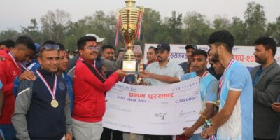 बाँके । बाँकेको कोहलपुरमा सञ्चालित तेस्रो मुख्यमन्त्री कोहलपुर गोल्डकप फुटबल प्रतियोगिताको उपाधि राईजिङ स्टार फुटबल क्लबले जितेको छ । शनिबार भएको फाइनल खेलमा राईजिङ स्टारले आयोजक कोहलपुर रेसिङ साहारा क्लबलाई