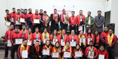 काठमाडौं, मंसिर २४ ।श्रीलंकाको कोलम्बोमा सम्पन्न विश्व पावरलिफ्टिङ च्याम्पियनशिपका पदक विजेता नेपाली खेलाडीलाई राष्ट्रिय खेलकुद परिषद्का सदस्य–सचिव रामचरित्र मेहताले एक समारोहमार्फत नगदसहित सम्मान गरेका छन्। मंसिर १२ देखि १४ गतेसम्म