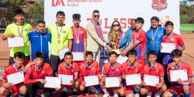 काठमाडौँ।लिटल एन्जल्स (एलए) विद्यालयले आयोजना गरेको एलए स्पोर्ट्स मिटअन्तर्गत ब्वाइज फुटबलतर्फ एलएले सोमबार उपाधि जितेको छ। रोमाञ्चक फाइनलमा एलएले एटीएमलाई टाइब्रेकरमा ४–२ ले हराउँदै घरेलु मैदानमै च्याम्पियन बन्न सफल भयो।