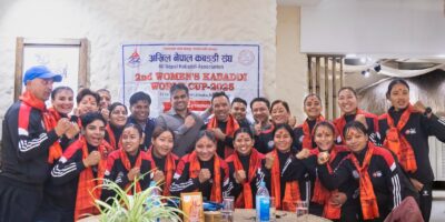 काठमाडौं । कार्तिक २९, २०८२ केबी साम नेपाल कबड्डी लिग (एनकेएल) ले वुमेन्स कबड्डी वल्र्डकप २०२५मा सहभागी हुन तयारी अवस्थामा रहेको नेपाली राष्ट्रिय महिला टिमलाई ट्रयाकसुटलगायत आवश्यक खेल सामग्री प्रदान
