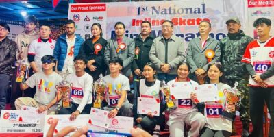 काठमाडौं । नेपाल स्केटिङ तथा स्केटबोर्डिङ संघ र गोकर्णस्थित द स्केटल्याण्ड स्केटपार्कको संयुक्त आयोजनामा नेपालमै पहिलोपटक राष्ट्रिय स्तरको ओपन स्केट म्याराथन प्रतियोगिता सफलतापूर्वक सम्पन्न भएको छ। आज बिहान सुन्दरीजलबाट सुरु