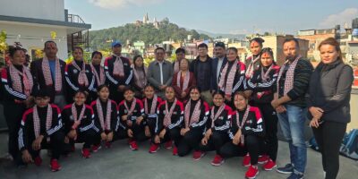 काठमाडौँ, कात्तिक २८ गते।नेपाल ओलम्पिक कमिटी (एनओसी)ले शुक्रबार दोस्रो महिला कबड्डी विश्वकपमा सहभागी हुन बङ्गलादेश प्रस्थान गर्ने नेपाली टिमको औपचारिक विदाइ गरेको छ। अध्यक्ष जीवनराम श्रेष्ठ र महासचिव राजीव श्रेष्ठले